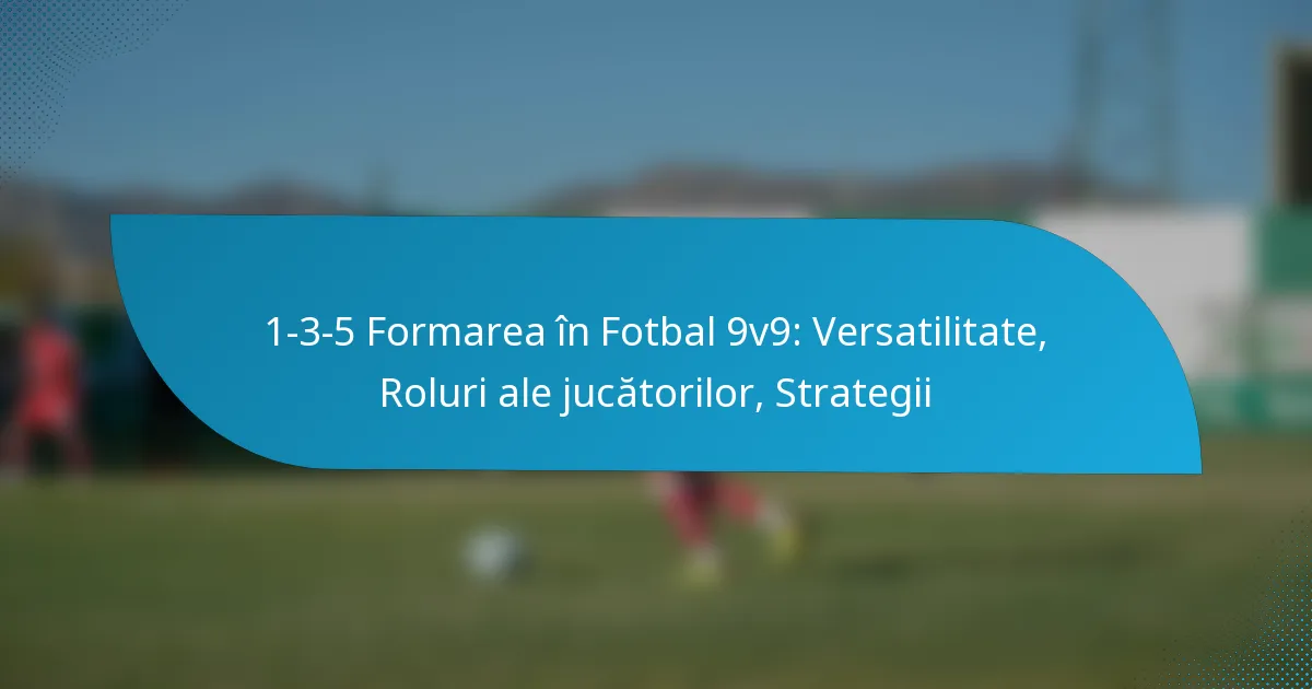Formația 1-3-5 în fotbalul 9v9 subliniază versatilitatea și munca în echipă, atribuind roluri distincte fiecărui jucător. Această structură include de obicei un portar, trei fundași, cinci mijlocași și fără atacanți tradiționali, permițând o mișcare fluidă și un joc dinamic.