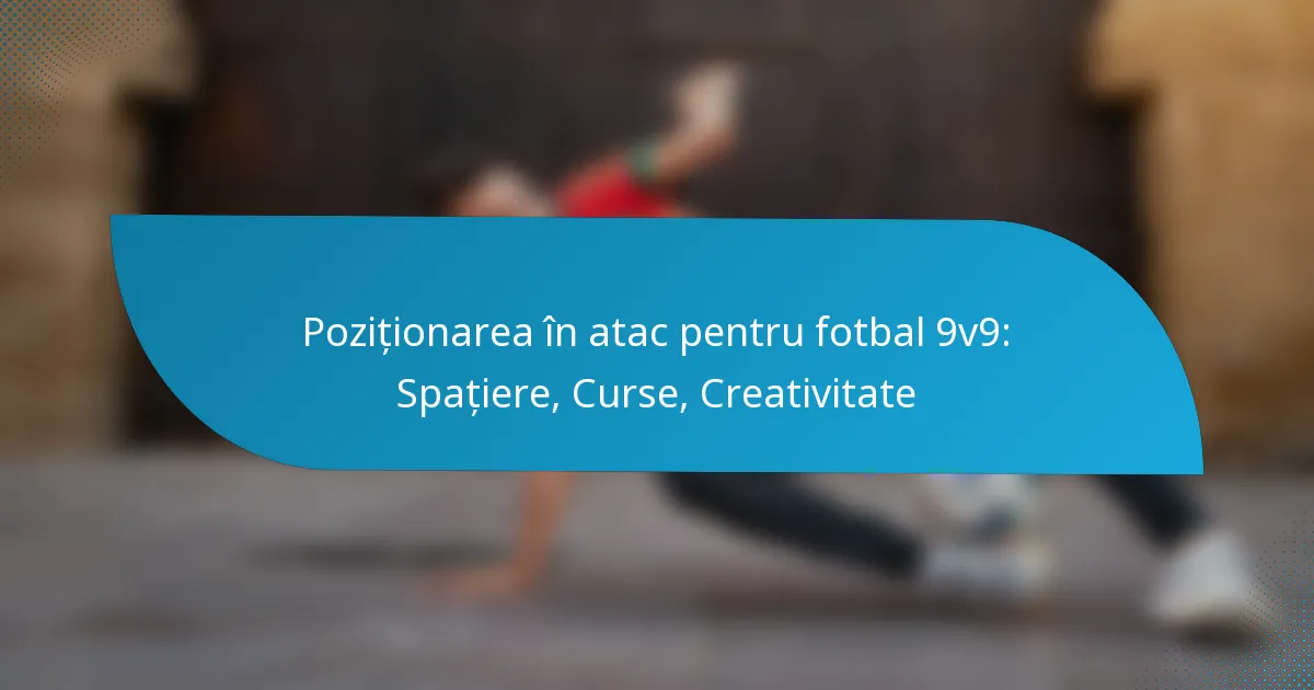 Poziționarea în atac în fotbalul 9v9 este esențială pentru maximizarea potențialului ofensiv printr-o spațiere eficientă, alergări dinamice și creativitate. Prin menținerea unei spațieri corecte, jucătorii pot crea căi clare de pase și pot minimiza aglomerarea, permițând echipei să exploateze slăbiciunile defensive. În plus, alergările variate perturbă structurile defensive, favorizând oportunități pentru coechipieri și îmbunătățind creativitatea generală a echipei.
